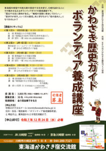 2024年1月8日 / 最終更新日時 : 2025年11月4日 rekishi-adplayers お知らせ 依頼ガイドを承ります 2023年は東海道川崎宿起立400年にあたり各種のイベントがありました。2024年からは従来どおり依頼ガイドを承りたいと思います。ご応募をお待ちしています。